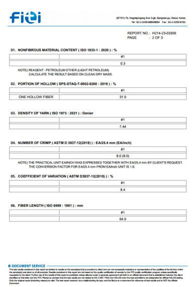 | Viscose Rayon Fiber FR Grade | 4.44 | 60 | 소방 방호 산업 군수 케르리스 생활용품 침구류 및 특수의류용, 난연부직포용 | LOI 28min , 우수한 난연성과 세탁성 |